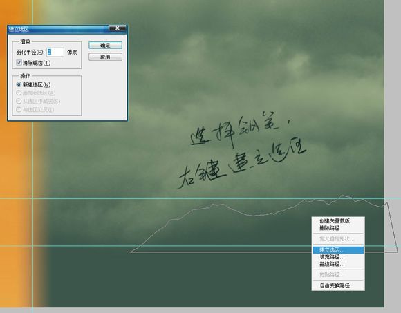 用路径钢笔随便画一个山峰,有点像就行了,要是你的手不像我这么抖的话直接用套索~