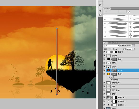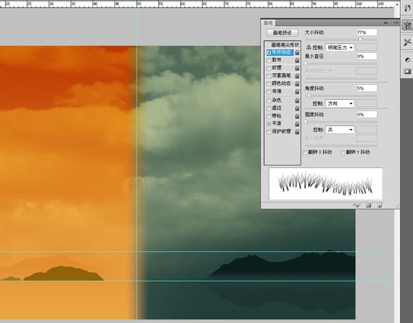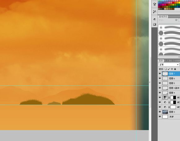 用预设画笔制作岛上的植被,选择画笔中的一个类似于草的默认笔刷~