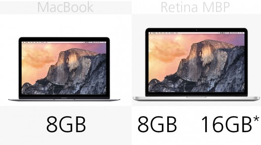 苹果新款Macbook上并没有缩水,同样采用标准的8GB内存。不过Retina屏幕的MBP能够最高提升到16GB。