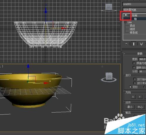 1、首先,我们先了解一下什么是车削。修改功能可以通过旋转一个二维图形,产生三位物体。