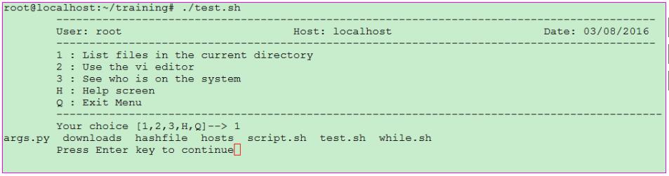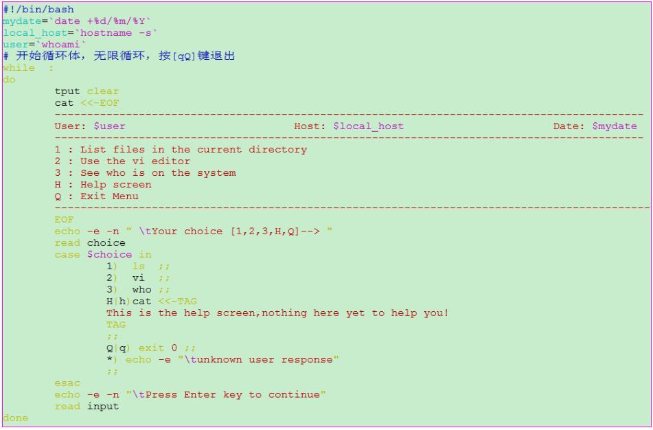 下面是个实例:使用while :让程序一直运行下去,直到按q或者Q退出为止