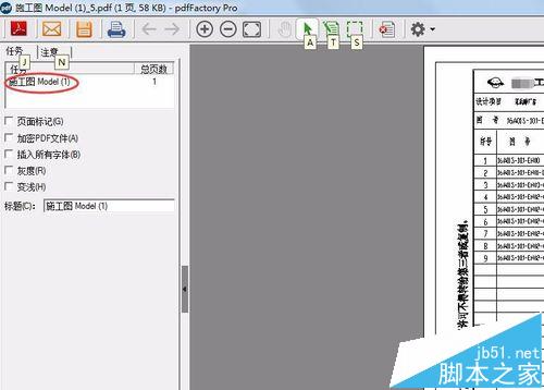 5、弹出一个刚打印出来的PDF文件,可以看到左边的任务下有一张图纸,暂时先不保存,也不要把它关闭了。