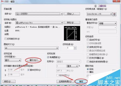 2、在打印机下拉菜单中找到PdfFactory.Pro 打印机,选择它,打印范围选择窗口,点击窗口。