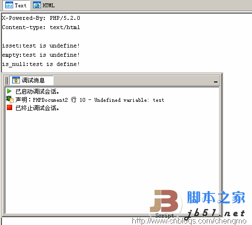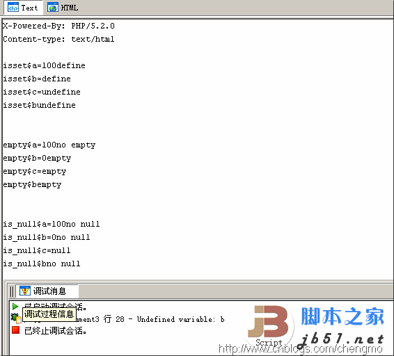 echo "isset","\$b=$b",isset($b)?"define":"undefine","\r\n";
