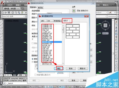3、进入之后,点击菜单栏的“自定义”,这里都是刚才复制进来的填充图案,选择其中的图案,点击“确定”,然后选择填充的对象位置,就可以使用刚才安装的填充图案。