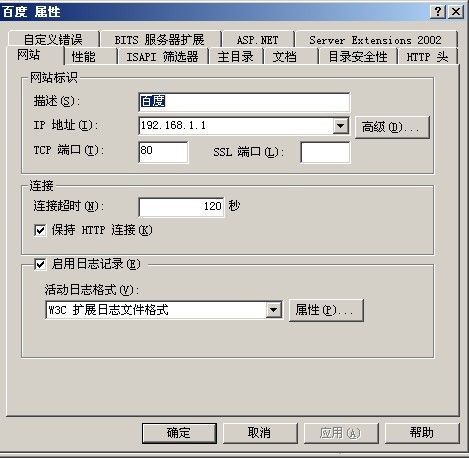 IP地址还是192.168.1.1,端口还是80,然后点击高级,选中192.168.1.1,然后选择编辑,在主机头值中输入www.baidu.com.剩下的是一路确定了。。