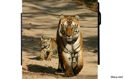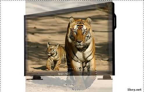 2.再找来老虎的图片,覆盖在LCD的层上,调整好老虎在LCD中显示的位置(可以先将老虎的透明度调整到 50%左右以便调整位置)记得调整好老虎的位置后复制一个层隐藏,我们后面将会用到