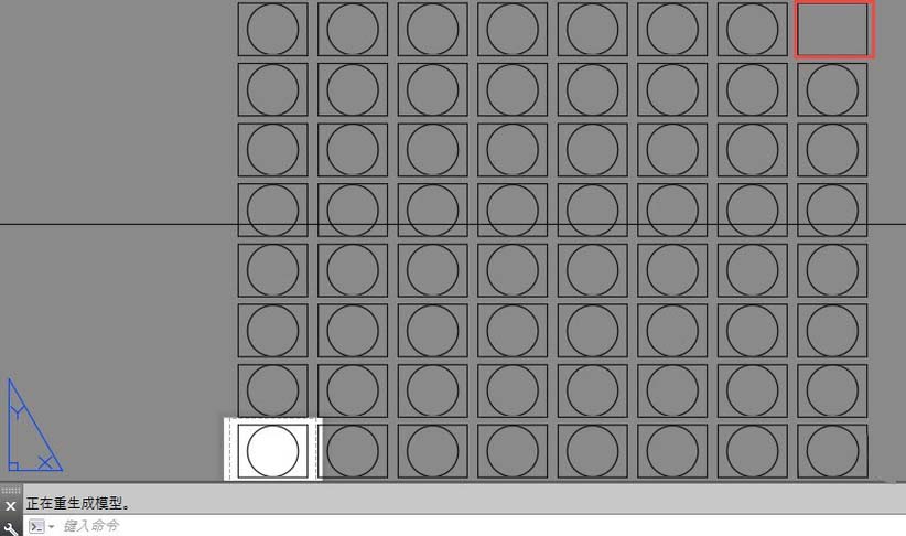 5、单击确定按钮,阵列生成64个视口。双击鼠标中键,显示所有视口,我们看看视口显示的效果。我们可以看到右上角的视口显示空白了,从此我们也知道CAD中最多可以显示63个视口。如果我们的布局中有视口显示空白,我们就需要检查一下我们的视口是不是太多了。有时看到某些图纸的布局中视口并没有那么多,但仍有视口没有显示,原因通常是类似的,只是人为修改了激活视口数量的限制。