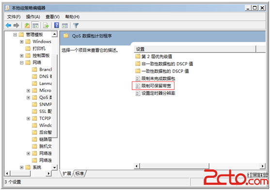 出现以下窗口,双击“限制可保留带宽”
