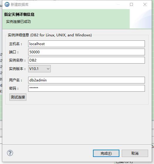 数据库安装好之后新建一个实例,默认是DB2,然后创建一个新的数据库,我创建的MYTEST(在操作数据库以及链接数据库需注意大小写),命令行方法: