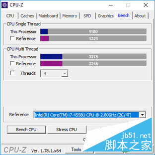 FX 9830P 的CPU部分是四核心四线程的挖掘机架构模块,拥有2048KB L2缓存,没有L3缓存,基准频率3.0Ghz,最大倍频38,稳定频率约为3.5Ghz,大幅度超过前代平台。在CPU-Z的简单性能测试对比中,我们可以看到这款CPU与桌面架构类似的A10-7850K成绩很是接近。对于主流游戏本平台来说,这个成绩已经可以满足基本需要。