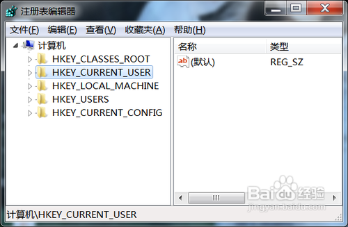 在上面的“用户帐户控制”对话框中单击“是”按钮,会打开注册表编辑窗口: