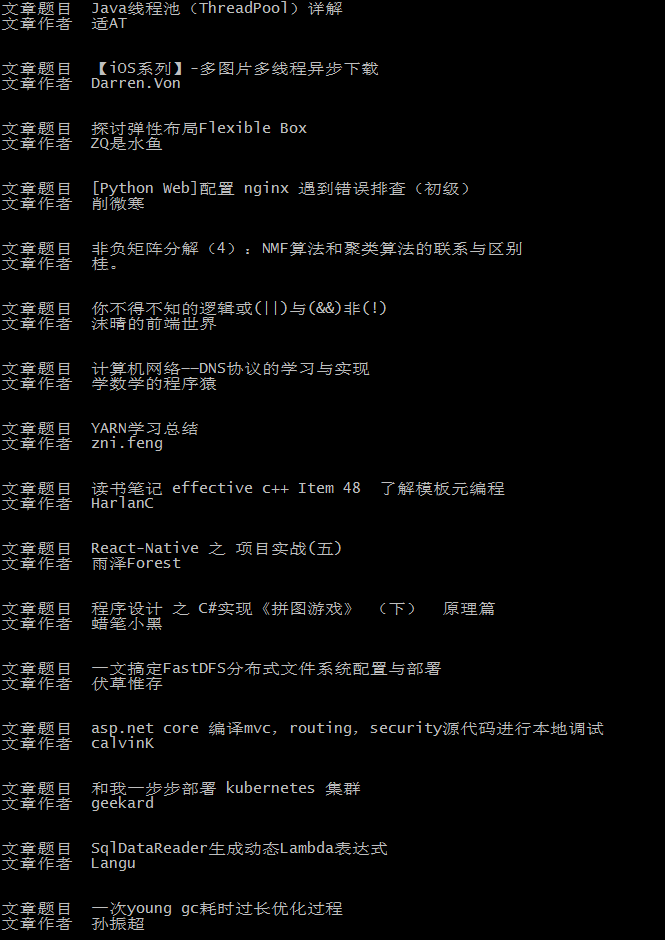 即上面的过程就是在爬取博客的题目和作者。