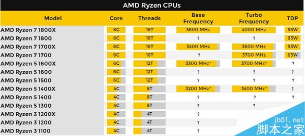 规格方面,两部分爆料都证实了Ryzen 8核 20MB缓存(2+3),不过顶级的1800X冲上了4GHz,功耗95W,1700X 3.8GHz 功耗95W,1700仅有65W,主频3.7GHz。