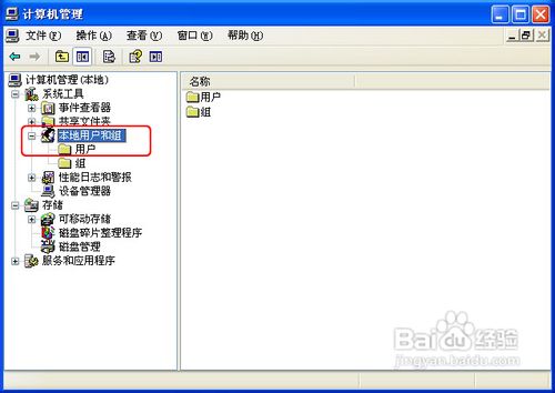 进入计算机管理界面,左边框里在系统工具下点开(本地用户和组),再点下面的(用户)。