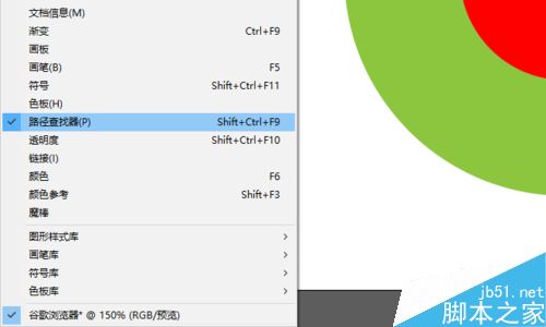 4、选中大圆和小圆后,点击窗口——路径查找器,在弹出面板中选择“减去顶层形状”得到一个圆环。