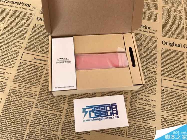 包装盒为环保的硬质牛皮纸盒,里面布局合理,一份说明书,一个充电宝,一根15厘米的MicroUSB充电线。