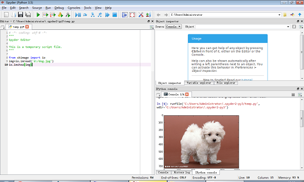 我们简单编写一个程序来测试一下安装是否成功,该程序用来打开一张图片并显示。首先准备一张图片,然后打开spyder,编写如下代码: