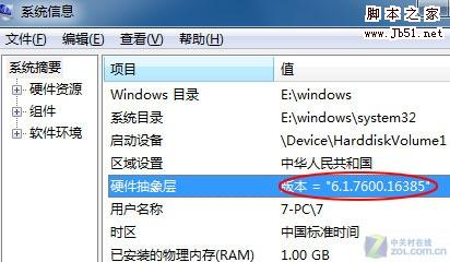 点击开始菜单,在“搜索程序和文件”框内输入“msinfo32”(输入时,不分大小写,也不要输入双引号)。回车后,将会打开“系统信息”窗口,窗口右侧部分的“硬件抽象层”对应的就是当前Windows 7的具体版本号。
