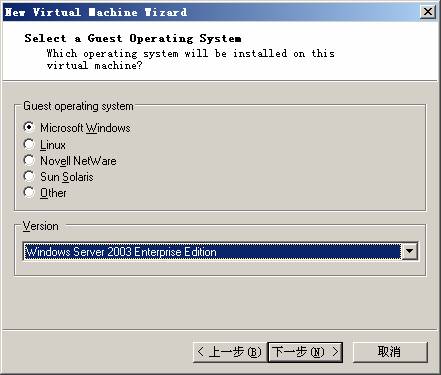 3. 选择Microsoft windows , 并找到Windows Server 2003 Enterprise Edition.