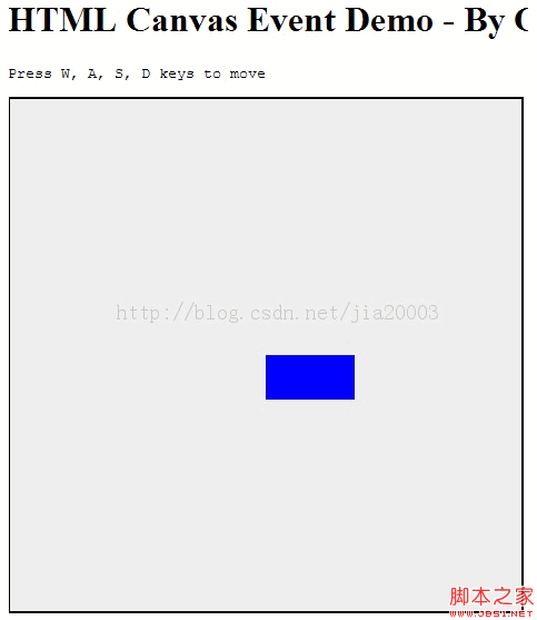 演示HTML5 Canvas鼠标事件,获取Canvas对象上的鼠标坐标,演示键盘事件通过键盘控制Canvas上对象移动。