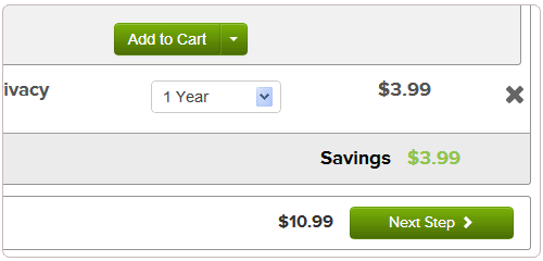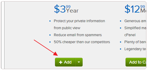 3、在购物车中,点击添加3.99美元一年的Whois保护服务。