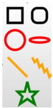 这个例子画了很多形状:正常的矩形,带圆角的矩形,圆形,椭圆形,直线,折线,多边形,还有路径。这些都属于基本的图形元素。虽然绘制一个图形有很多种方式,比如矩形可以用rect实现,也可以用path等实现,但是我们还是应该尽量保持SVG的内容短小精悍,易于阅读。