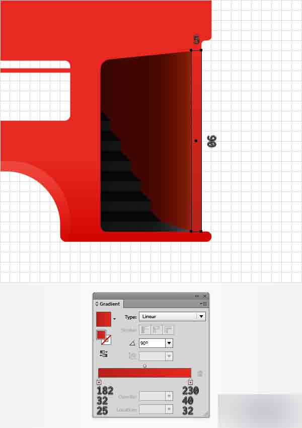 利用矩形工具(M),创建一个5 x 90px的形状,将其放置在如下图所示并用下面所示的渐变填充。