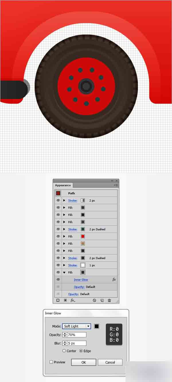 再次选择你的红色复合路径并如下所示添加内发光效果。