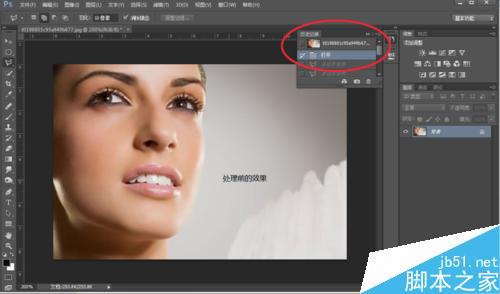5、单击确定关闭对话框,然后我们观察到牙齿变得更加明亮闪光。我们打开历史记录,可以明显的对比一下效果。