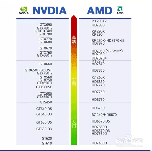 显卡:显卡是电脑非常重要的一个部位,分为集成显卡和独立显卡两种,集成显卡耗电低 独立显卡性能强,若仅是浏览网页看看电影,集成显卡也不错。如果玩游戏 专业制图 建模 看高清电影 就要选择独立显卡了。如今显卡的两大巨头nvdia和amd,下面是显卡天梯图 atx开头的主要看中间的数字,越大越好