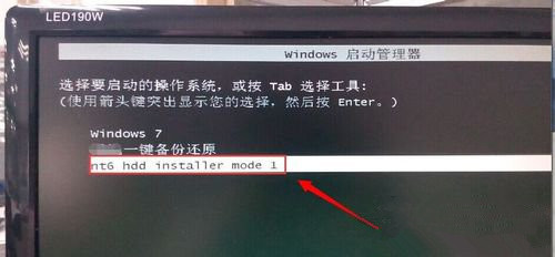 7、重新启动电脑后,就会在选择操作系统的界面下多出一个【nt6 hdd installer】选择它进入。