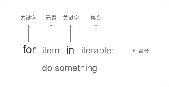 for循环可以用来遍历某一对象(遍历:通俗点说,就是把这个循环中的第一个元素到最后一个元素依次访问一次)。for循环的基本结构如下: