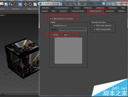 2、如果在Customize——preference——Gamma and LUT中设置Gamma,会改变整个场景明暗。