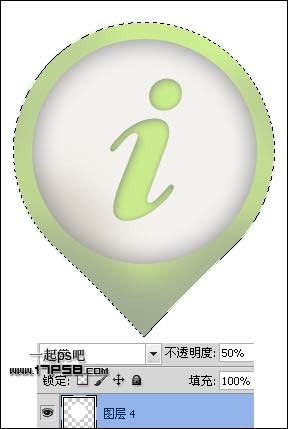 下面制作高光,新建图层4,调出符号选区,填充白色,图层不透明度50%。