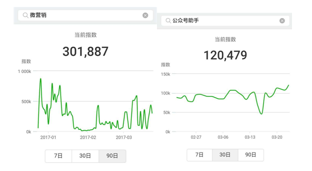 而“微信指数”也有助于以后的提高微信营销和公众号广告的效果。微信营销内容或者广告内容,都要抓住用户的眼球才能获取更好的效果,以往都是被热点牵着鼻子走,蹭一些已经快要被人看腻的热点,充当营销和广告策划的看点。来自迅蟒自媒体助手的数据, “王宝强离婚事件”爆发时各种文案纷纷蹭热度,过了半年之后还一直不断有人蹭这个热度,然而受众对这些过时的热点不仅失去兴趣,甚至看多了会腻烦,这样的营销并不会有效果。当然有牛逼的团队,能在一些爆点出来的第一时间完成内容发布,但对于大多数公众号主来说,能力有限,这样很难做到。而“微信指数”的出现,恰好是给个众多晕头转向找不着营销诀窍的号主提供了一个好工具,哪些词最近有上涨的趋势,可以根据趋势找营销的热点,哪些热点已经有明显下降的趋势,可以放弃蹭这个热点的热度,发掘更有上涨潜力的新热词。这样让公众号主的眼光始终往前、往长远了看,不再陷入一个热点反复使用的窘境。