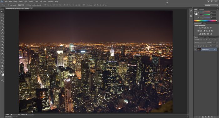 首先用PS打开城市图像,作为背景。