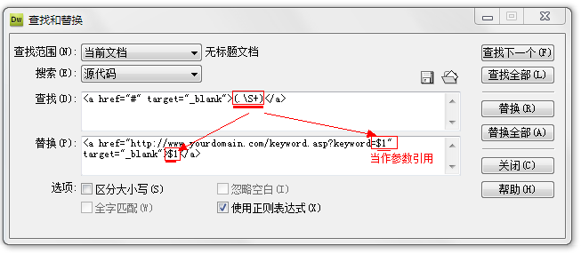 以上就是自由睫毛最近收集整理的关于使用DW正则表达式批量替换实例介绍的全部内容,更多相关使用DW正则表达式批量替换实例介绍内容请搜索靠谱客的其他文章。