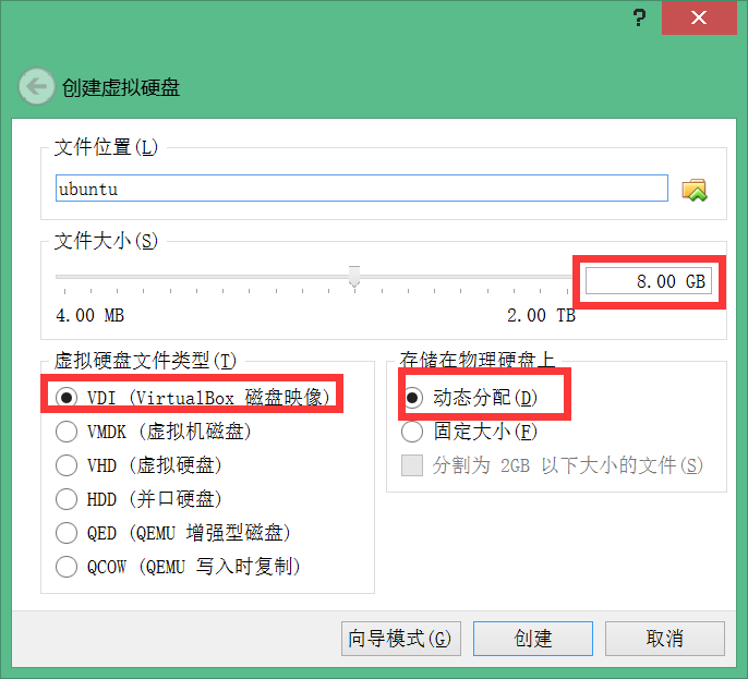 创建虚拟硬盘
