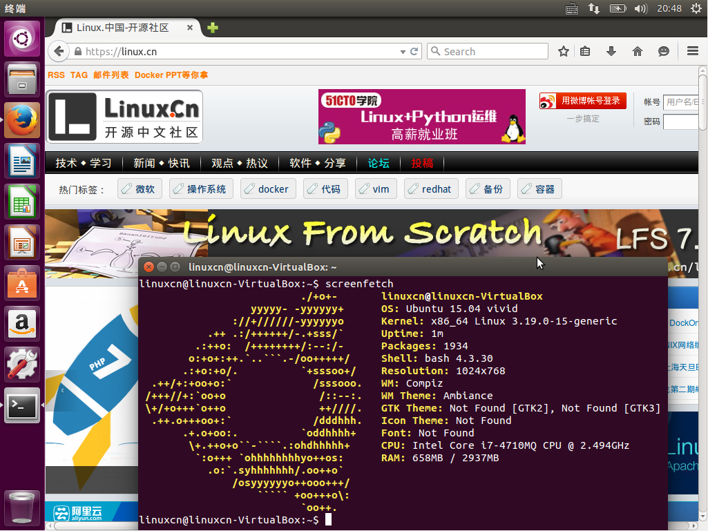 Ubuntu 是一个基于 Debian 的 GNU/Linux 操作系统,支持 X86 、64以及 PPC 架构。Ubuntu 每隔六个月发布一个版本,即每年的四月和十月,本文使用的是 15.04 64-bit 版本。Ubuntu 对于新手应该是比较友好的一个 Linux 发行版,中文本地化也做的不错,有开箱即用的感觉。因为 Ubuntu 近几年用户群的增加,多了很多对于新手有用的资料,因此不用担心遇到问题无法解决,善用搜索和提问,将使你更快速地成长。