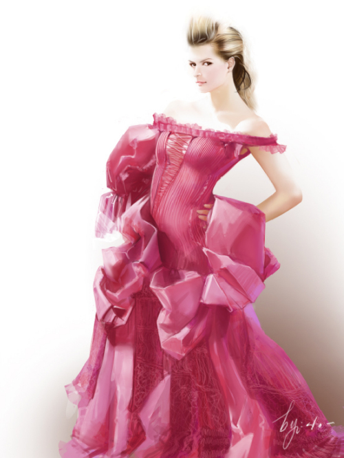 这次我们利用Painter丰富的笔刷结合友基数位板的细腻压感手绘一幅美丽的红衣模特插画。