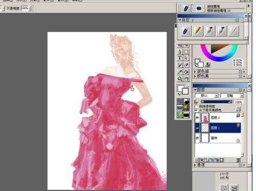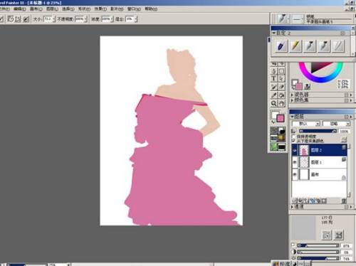 打开PAINTER(以下简称PT),我用的是PAINTER9.5中文版。新建画布,在这里设置的是1772象素X 2362象素,分辨率为300。将人物和衣服分别建立新图层,然后用钢笔工具下的平滑圆头钢笔(图1)绘制草图(同时按下CRTL ALT,再拖动画笔,可随意调整笔刷大小)。