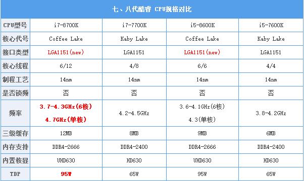 Intel 8代酷睿处理器规格简介: