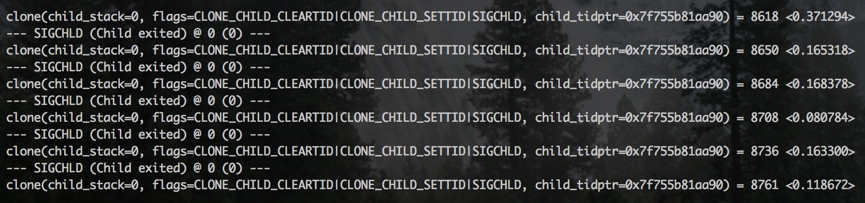 很明显,一个 clone 操作需要几百毫秒,至于 clone 的含义,参考 man 文档: