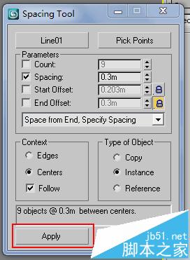 6、按步骤调整好后,看是否正确,如不正确就继续调整要阵列的物体,或直接点击【Apply】确定。如图。