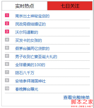 以上就是舒服仙人掌最近收集整理的关于html+css+jquery模仿搜索风云榜选项卡效果有截图的全部内容,更多相关html+css+jquery模仿搜索风云榜选项卡效果有截图内容请搜索靠谱客的其他文章。