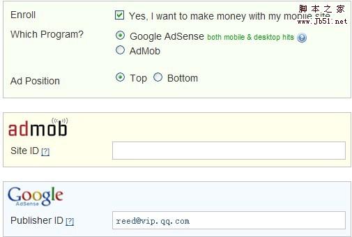 2:提供Google Adsense ID号绑定,以便在Wap站点中显示GA广告,但你收入的一半将会分给MoFuse。