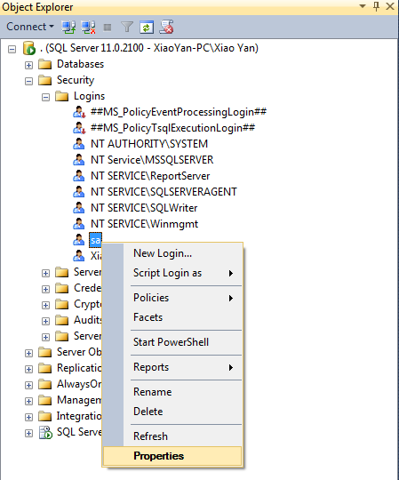 如果安装的时候没有选择“混合登录”,那么可以先WindowsAuthertication登录进去后修改配置: