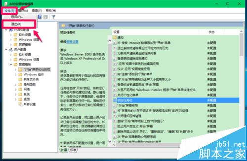 7、回到本地组策略编辑器窗口,点击左上角的【文件】,在下拉菜单中点击【退出】,退出本地组策略编辑器。