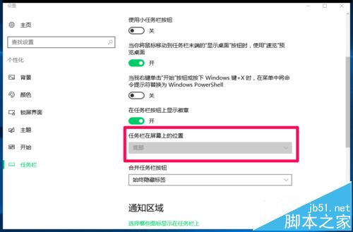 8、右键点击任务栏空白处 - 【设置】,可以看到,在任务栏设置里,【任务栏在屏幕上的位置】为可选择状态。